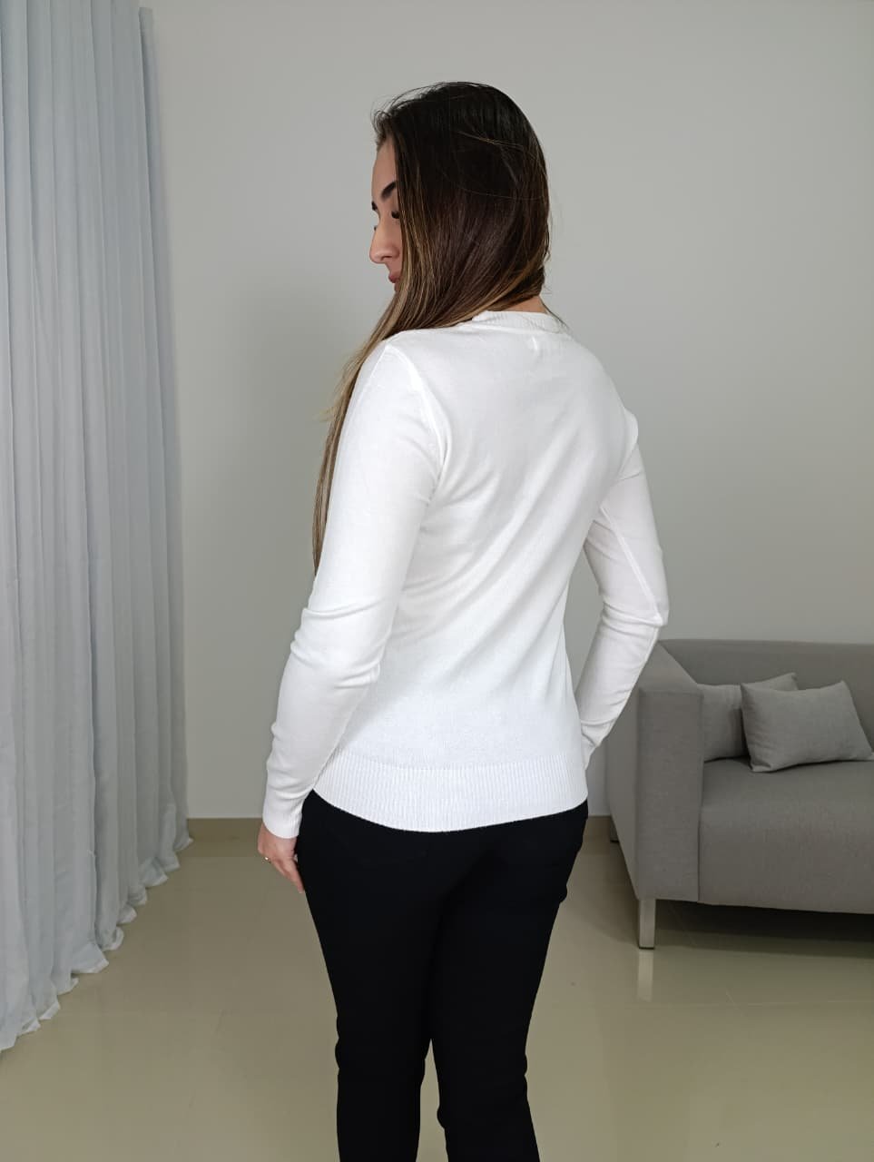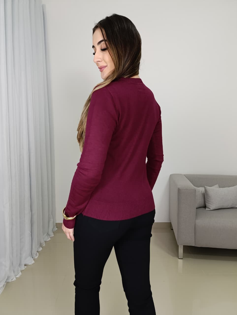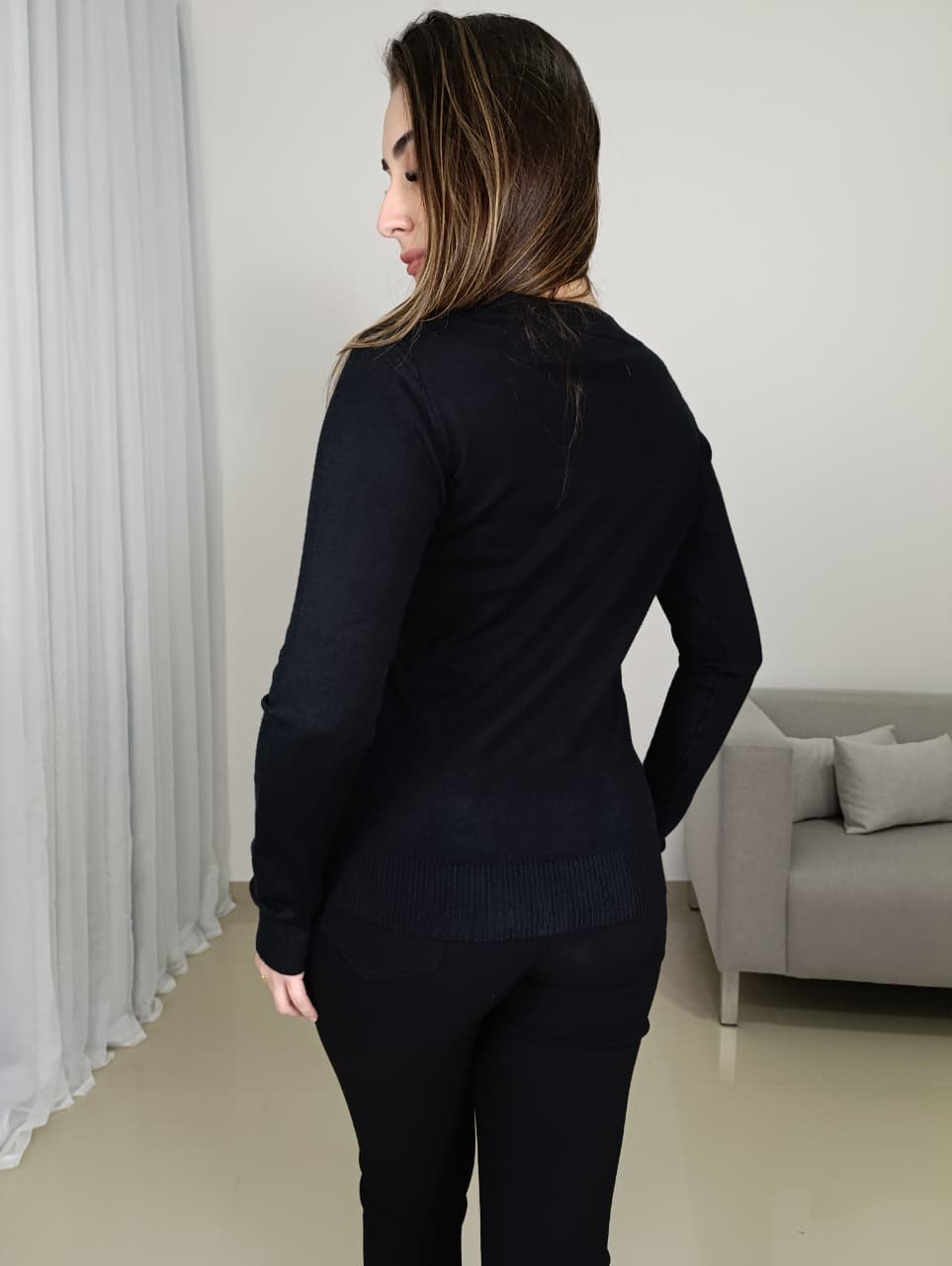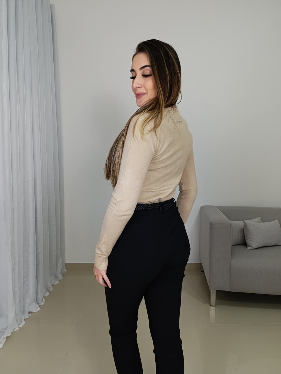 A modelagem slim valoriza a silhueta de forma elegante, deixando o visual alinhado e moderno. A gola redonda clássica traz versatilidade, permitindo composições tanto casuais quanto mais sofisticadas. As mangas longas ajustadas acompanham o desenho do corpo, tornando a peça ideal para usar sozinha ou como base para sobreposições com blazers, jaquetas, coletes ou casacos.