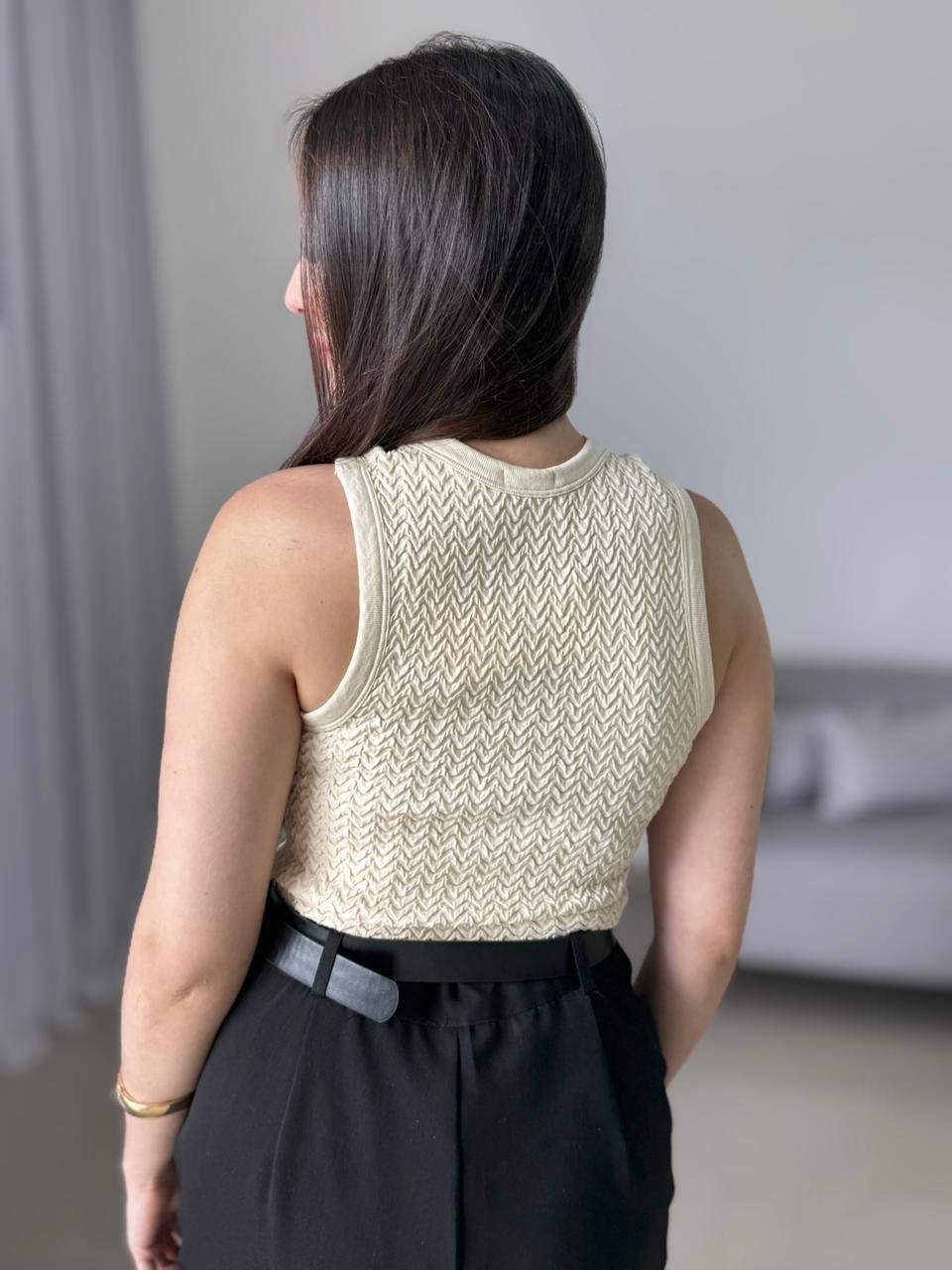 A modelagem é ajustável ao corpo, valorizando a silhueta de forma natural e elegante. O caimento acompanha as linhas do corpo com suavidade, tornando a peça versátil para diferentes propostas de look — desde produções mais casuais até combinações mais alinhadas e modernas. O design minimalista permite fácil composição com shorts, calças, saias e peças de alfaiataria, sendo ideal para uso diário ou ocasiões que pedem conforto com estilo.