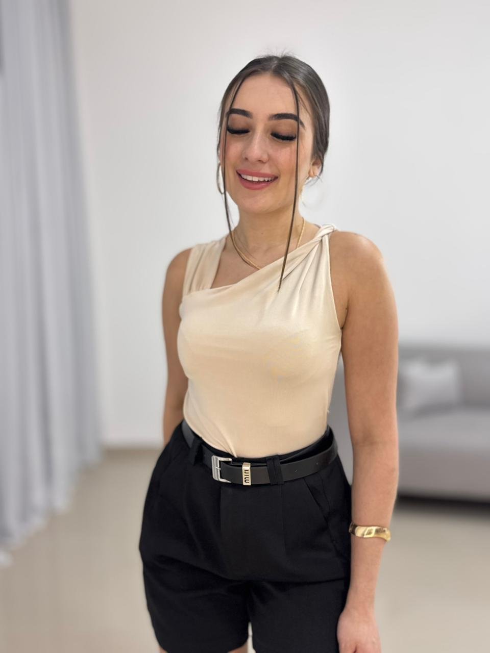 O modelo sem mangas proporciona frescor e praticidade, enquanto o detalhe delicado no decote acrescenta um toque moderno e feminino à peça, elevando o visual mesmo em produções mais simples. A cor bege é clássica, neutra e sofisticada, perfeita para compor looks claros, elegantes ou minimalistas, além de combinar facilmente com diferentes cores e estilos.