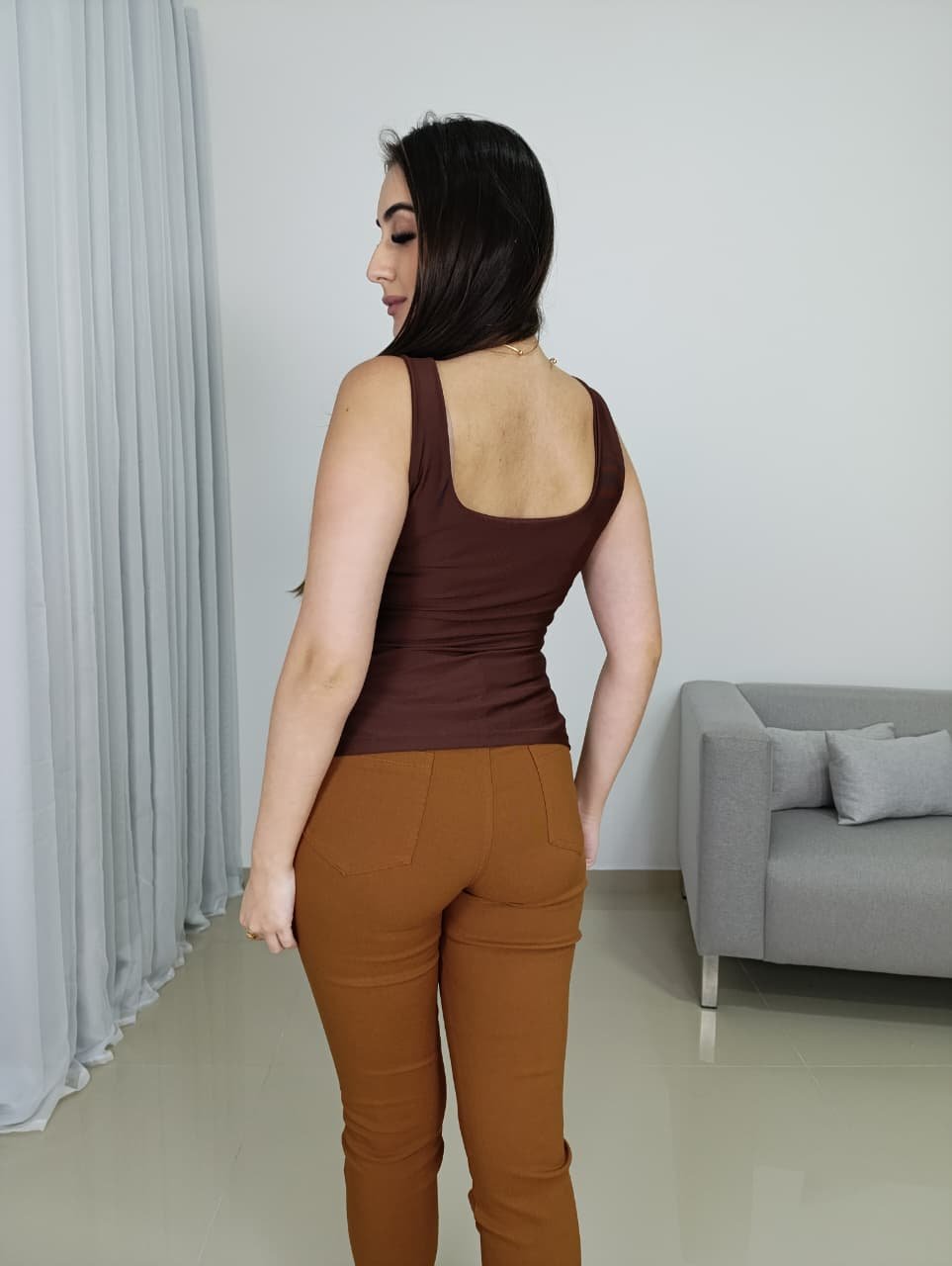 A modelagem é ajustada, valorizando a silhueta de forma elegante e natural. As alças mais largas oferecem melhor sustentação e conforto ao vestir, enquanto o decote equilibrado traz um visual feminino e sofisticado, ideal para diferentes ocasiões. É uma peça extremamente versátil, que pode ser usada sozinha nos dias mais quentes ou como base para sobreposições com camisas, blazers, jaquetas ou cardigans.