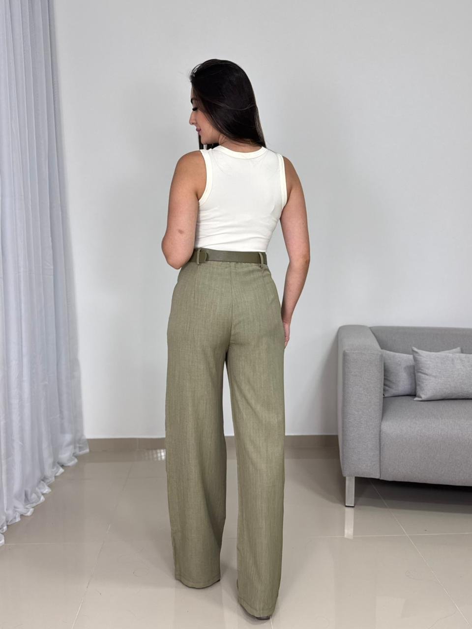 Confeccionada em tecido de alfaiataria importado, a peça possui excelente qualidade, toque macio e estrutura firme, mantendo o caimento impecável ao longo do uso. A calça acompanha cinto no mesmo tom da peça, com fivela elegante, que além de funcional agrega charme e acabamento sofisticado ao visual. A cintura média a alta oferece conforto e segurança, enquanto os bolsos laterais funcionais trazem praticidade ao dia a dia.