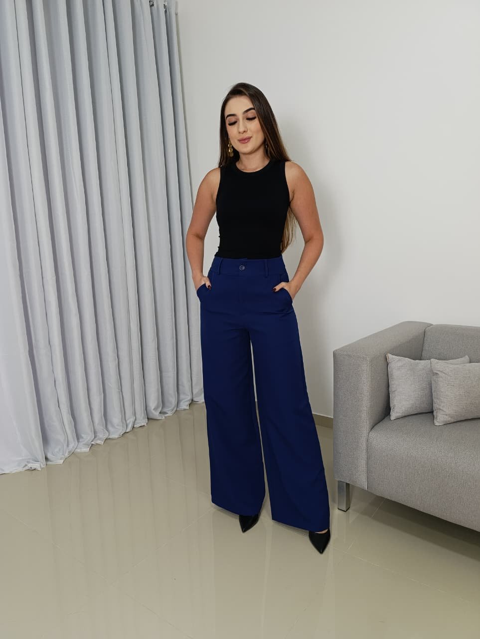 A Calça Alfaiataria Wide Leg Feminina Importada é a escolha perfeita para mulheres que procuram unir elegância, conforto e modernidade em um único look. Com modelagem wide leg — caracterizada pelas pernas amplas e retas desde o quadril até a barra — a peça cria uma silhueta sofisticada, alongada e extremamente elegante. Esse tipo de corte tem ganhado destaque na moda feminina justamente por proporcionar movimento, conforto e um visual contemporâneo que valoriza diferentes tipos de corpo.