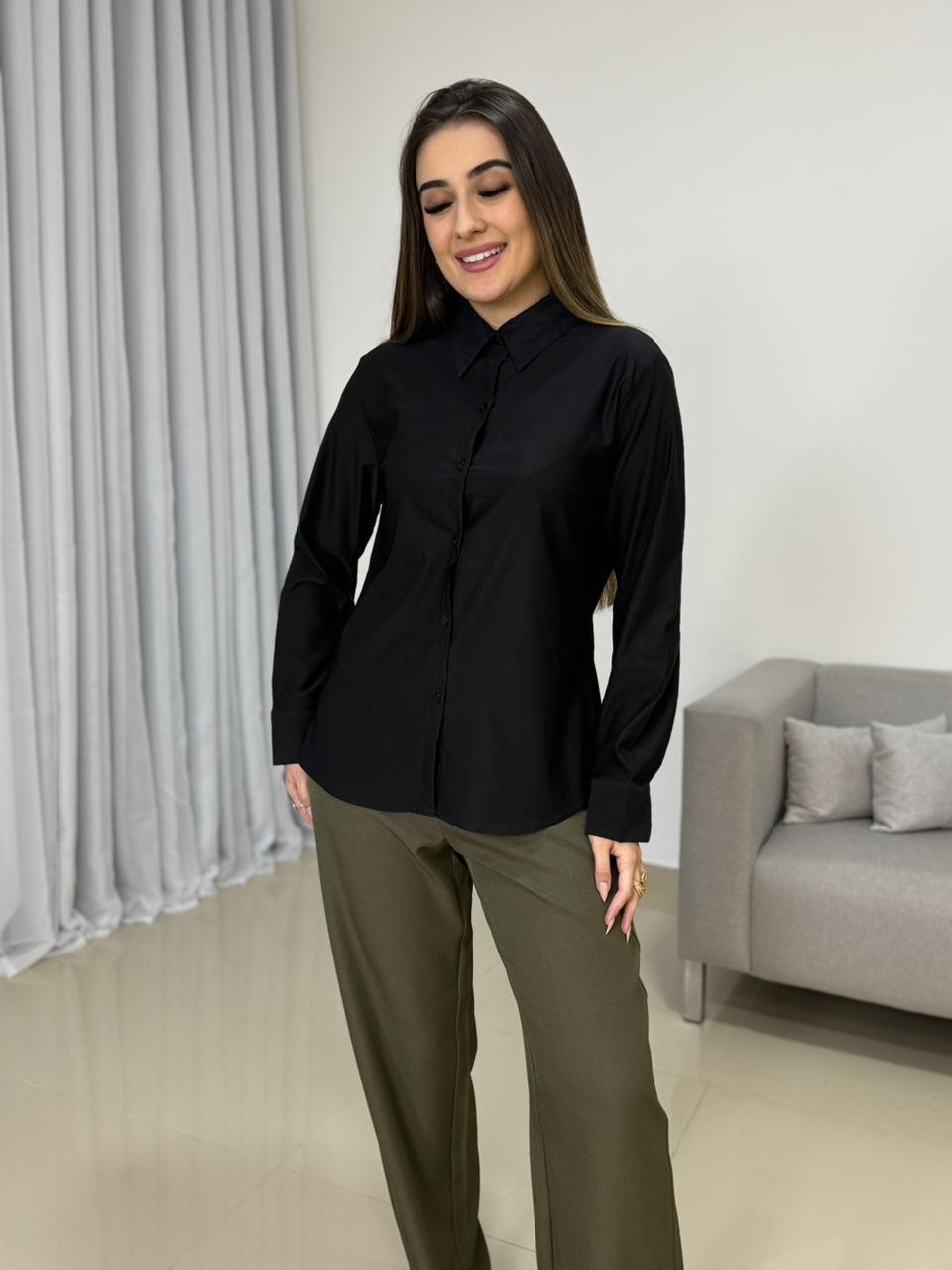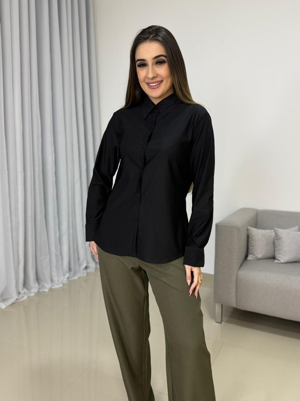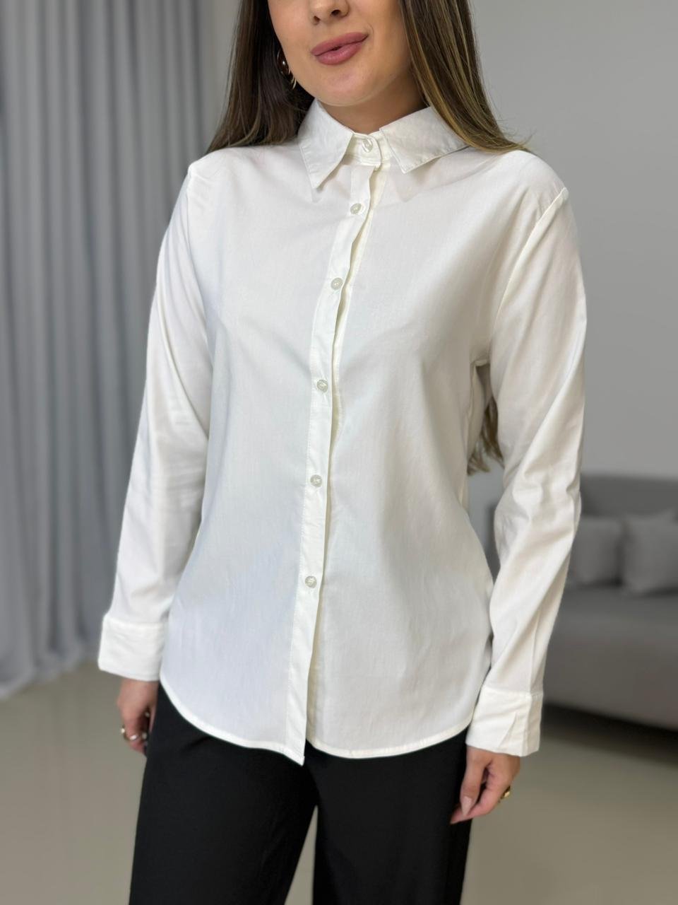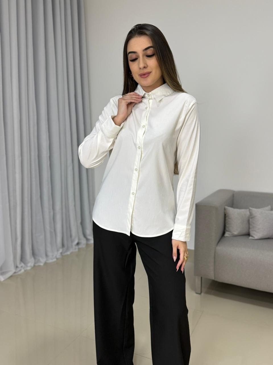 Seu acabamento premium inclui gola estruturada, punhos com abotoamento duplo e botões frontais discretos no mesmo tom da peça. Disponível em uma paleta de cores atemporais, ela transita com facilidade do ambiente corporativo ao happy hour. É a base ideal para compor looks com as nossas saias midi resinadas, calças de alfaiataria ou até mesmo um jeans clássico para uma proposta casual chic.