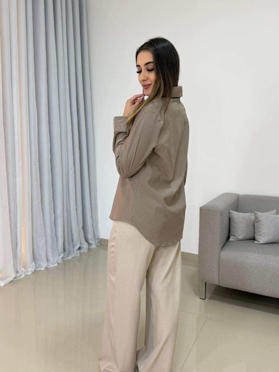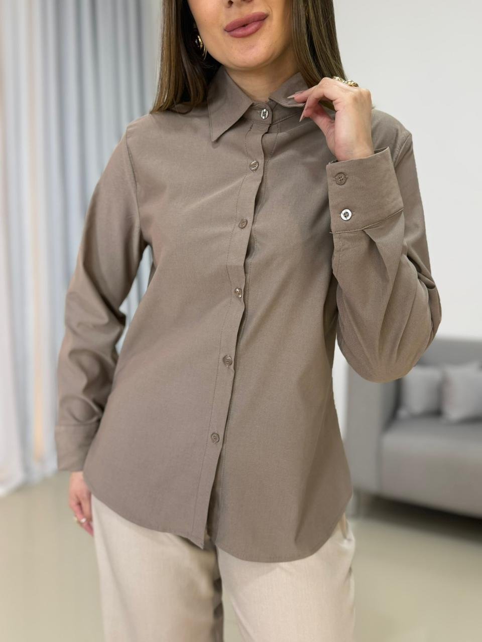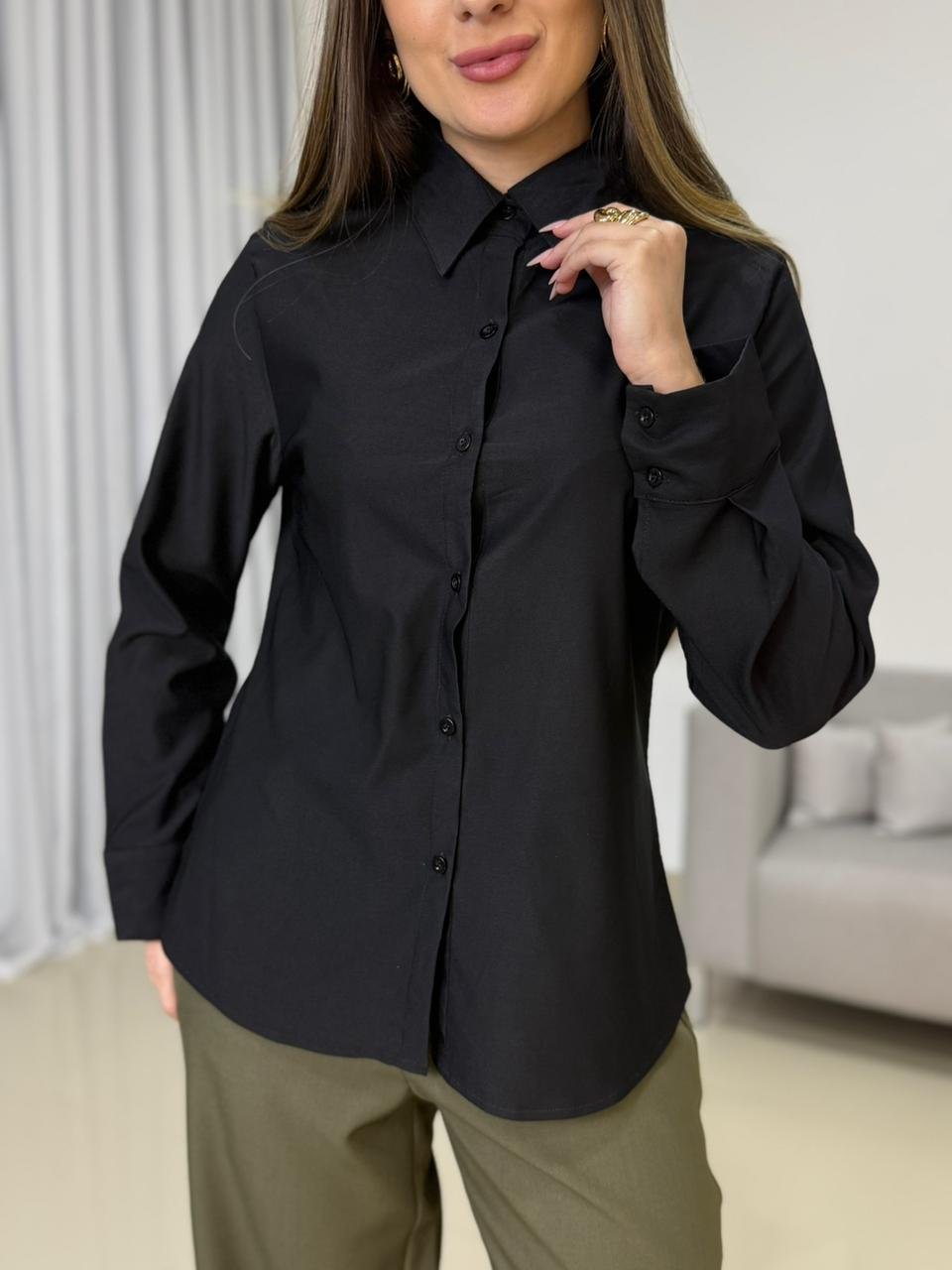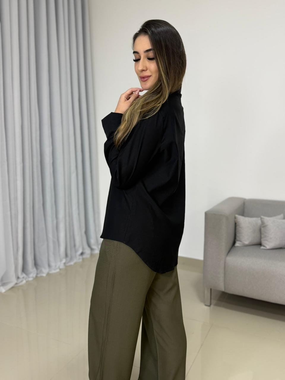 Seu acabamento premium inclui gola estruturada, punhos com abotoamento duplo e botões frontais discretos no mesmo tom da peça. Disponível em uma paleta de cores atemporais, ela transita com facilidade do ambiente corporativo ao happy hour. É a base ideal para compor looks com as nossas saias midi resinadas, calças de alfaiataria ou até mesmo um jeans clássico para uma proposta casual chic.