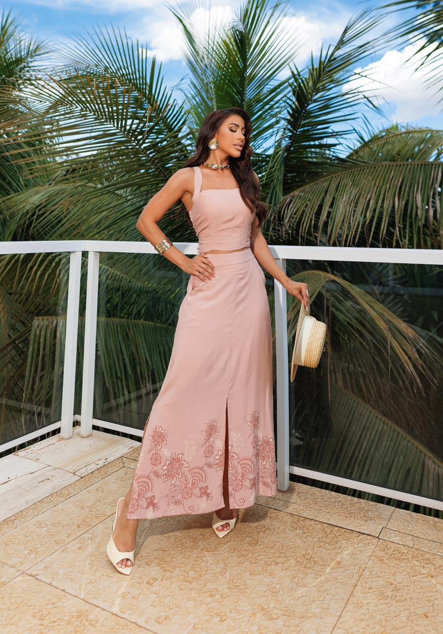 A saia conta com bolsos funcionais, unindo praticidade e estilo, além de apresentar modelagem confortável e comprimento alongado, que valoriza a silhueta e traz movimento ao look. Versátil, o Conjunto Sensorial Viscolinho pode ser usado tanto em produções mais casuais, com rasteiras ou sandálias, quanto em composições mais sofisticadas, com salto e acessórios. Ideal para passeios, viagens, eventos diurnos, jantares ou ocasiões especiais, é uma peça-chave para um guarda-roupa moderno e funcional.