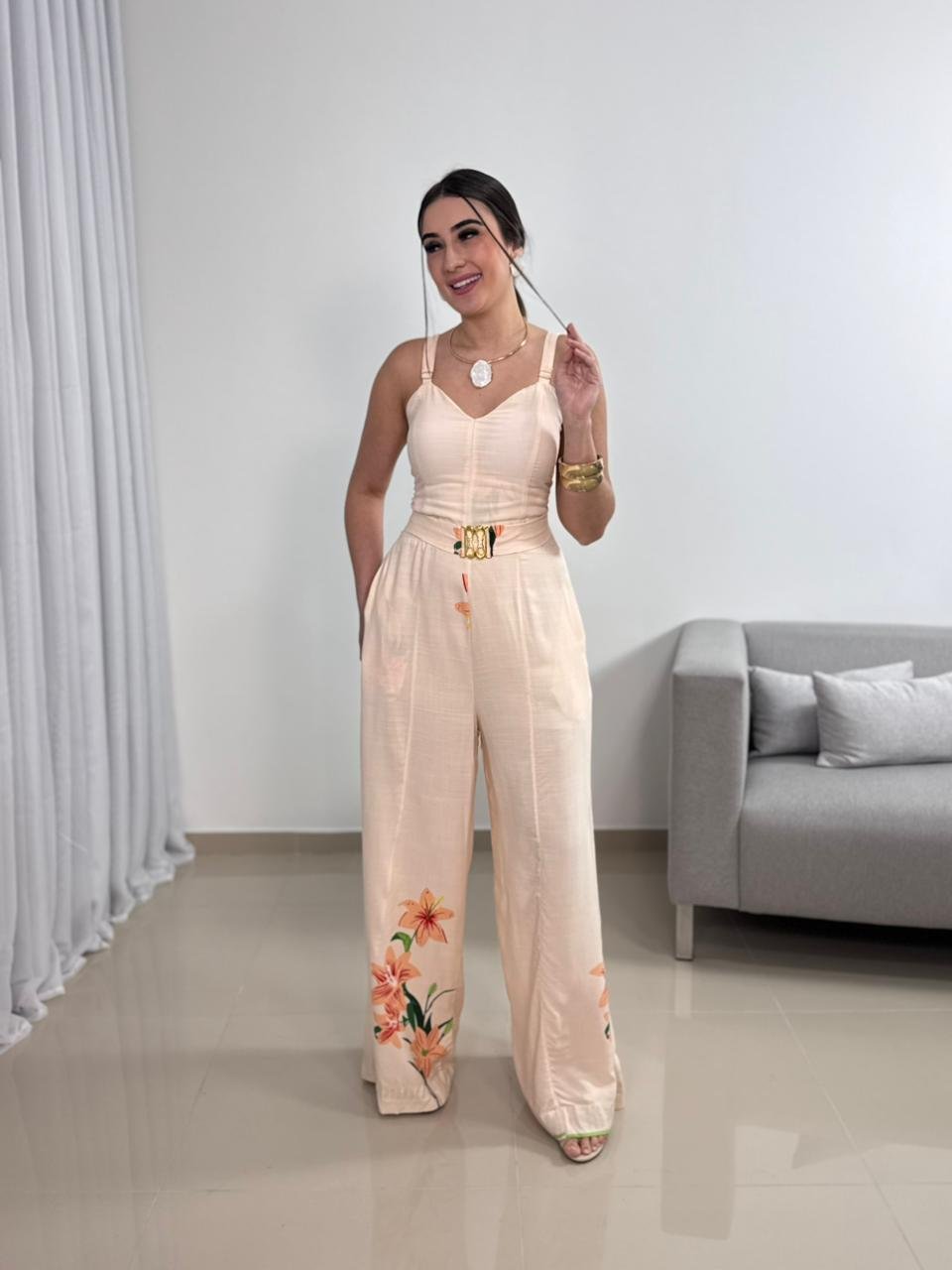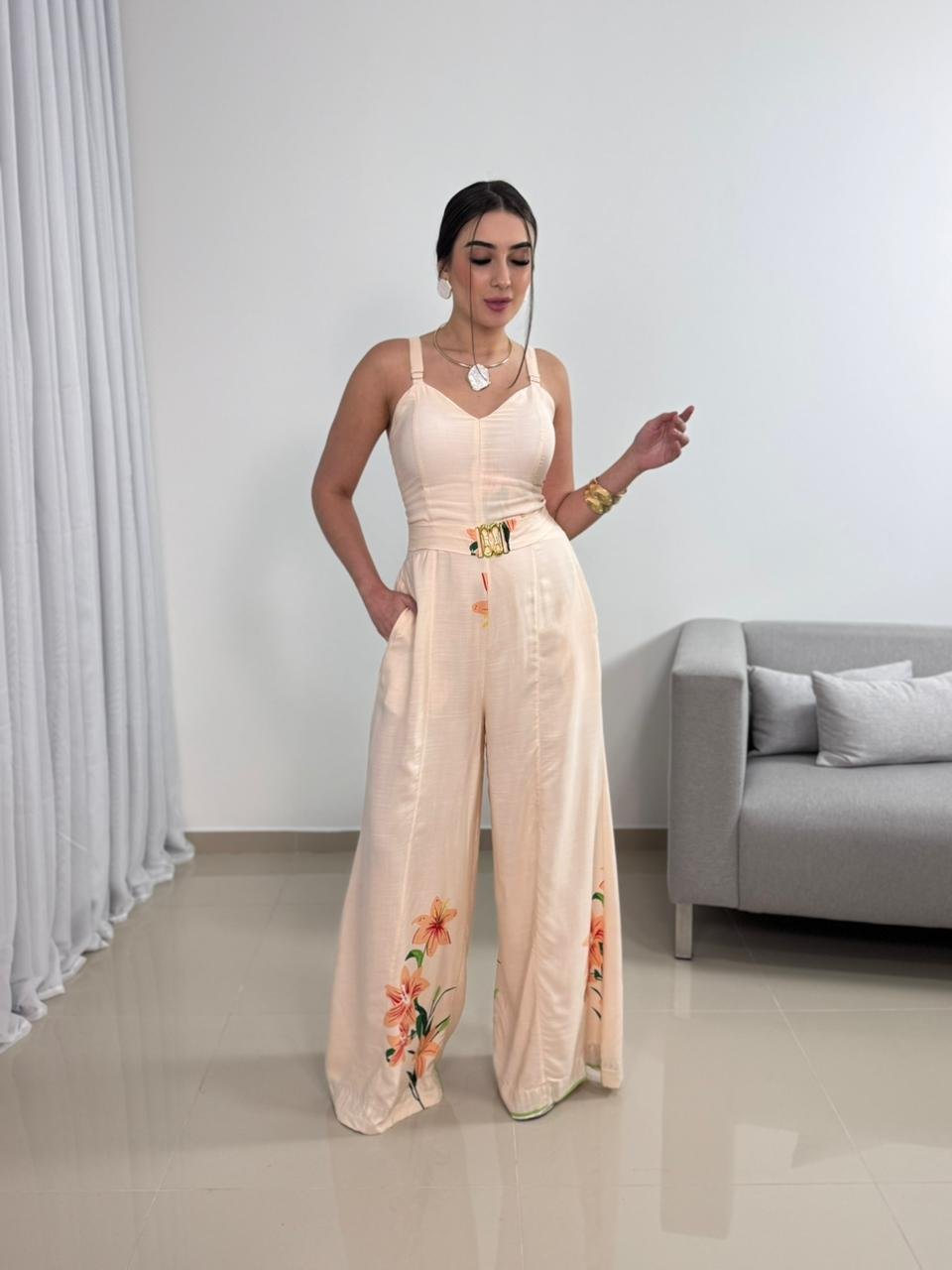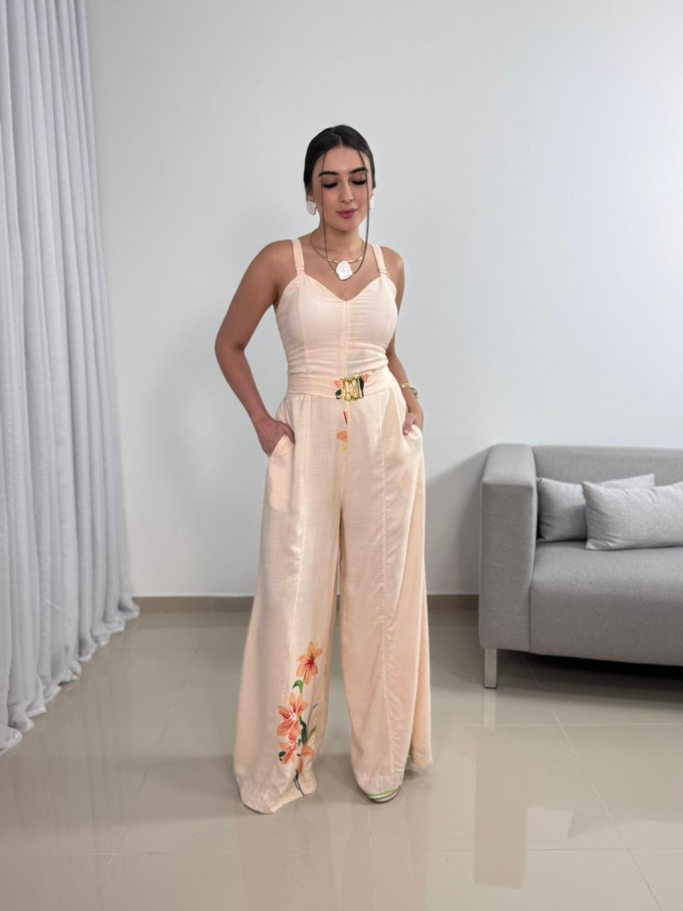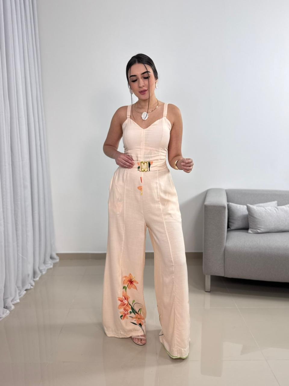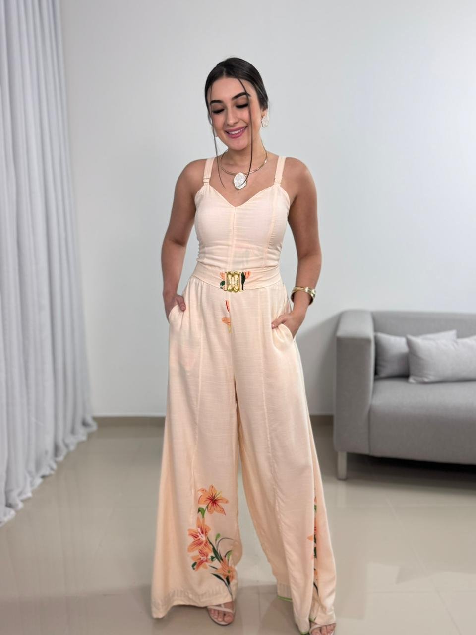 O Macacão Longo em Viscolinho com Bojo e Cinto é uma peça elegante e extremamente confortável, ideal para quem busca praticidade sem abrir mão de um visual sofisticado. Confeccionado em viscolinho, o modelo oferece toque macio, leveza e excelente respirabilidade, sendo perfeito para dias mais quentes e produções que pedem conforto aliado à elegância.