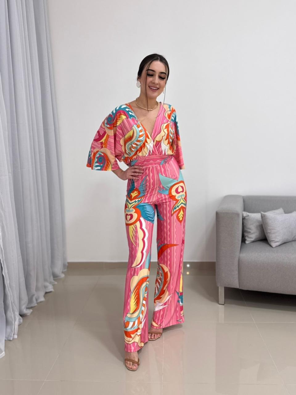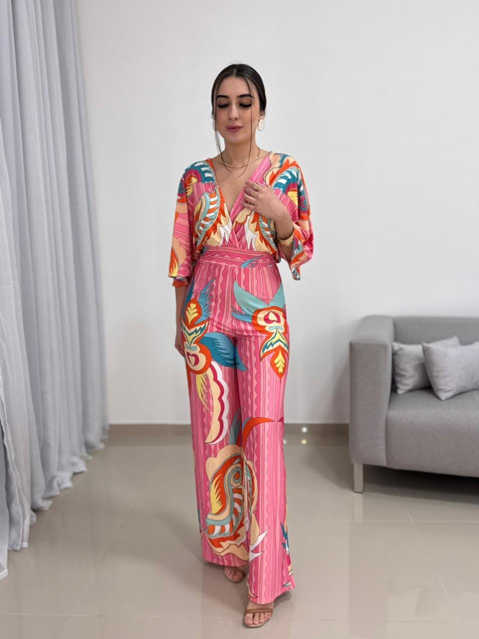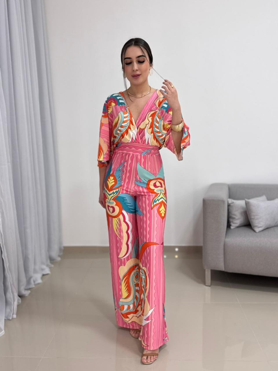 Por ser confeccionado em poliamida gelada, o macacão não amassa com facilidade, seca rápido e mantém o visual alinhado durante todo o uso. É uma peça prática para viagens, eventos, passeios, jantares ou produções mais elaboradas com salto e acessórios. Também funciona muito bem com sandálias rasteiras para uma proposta mais casual e moderna.