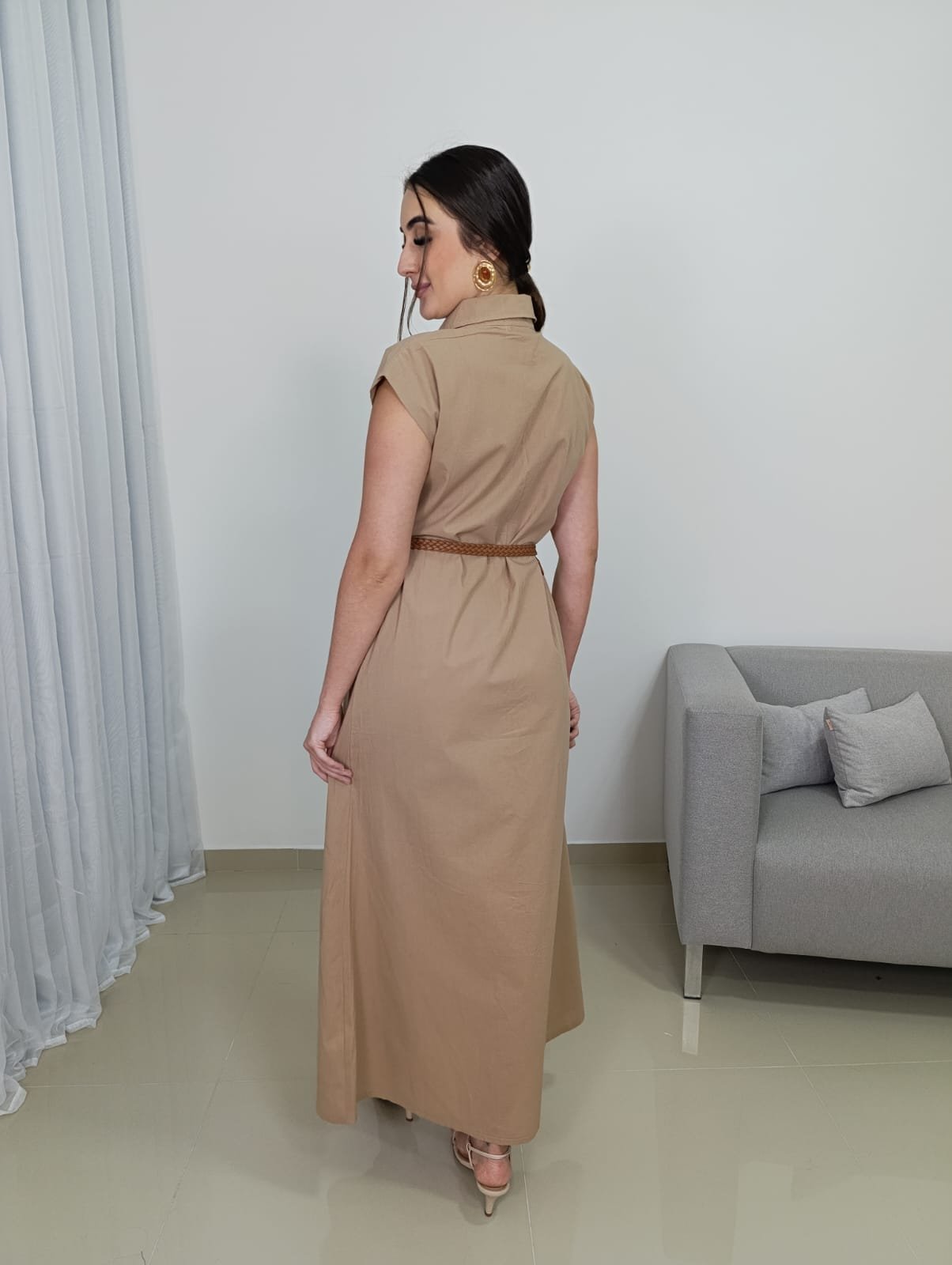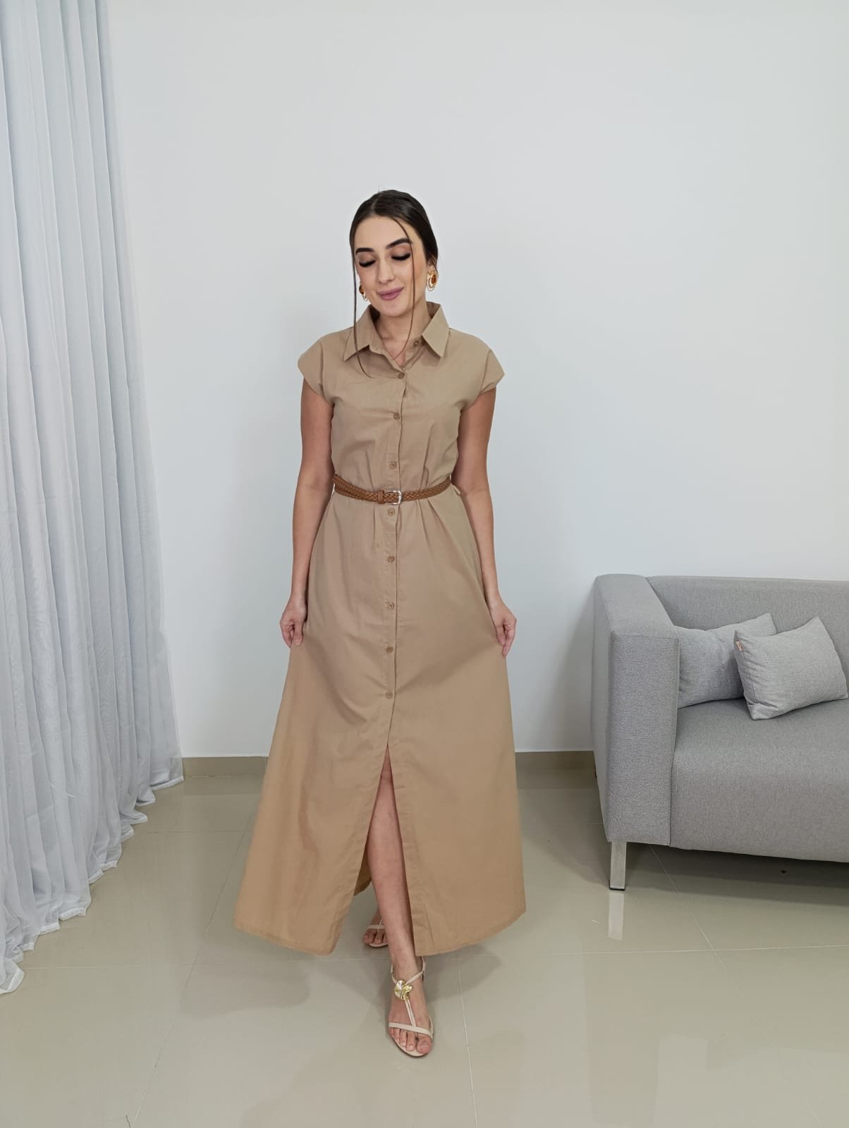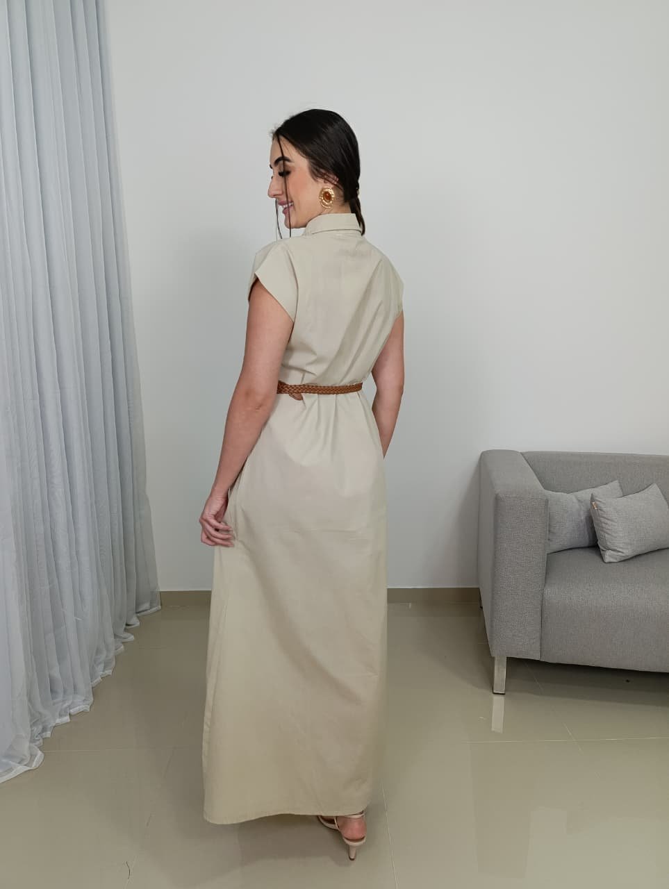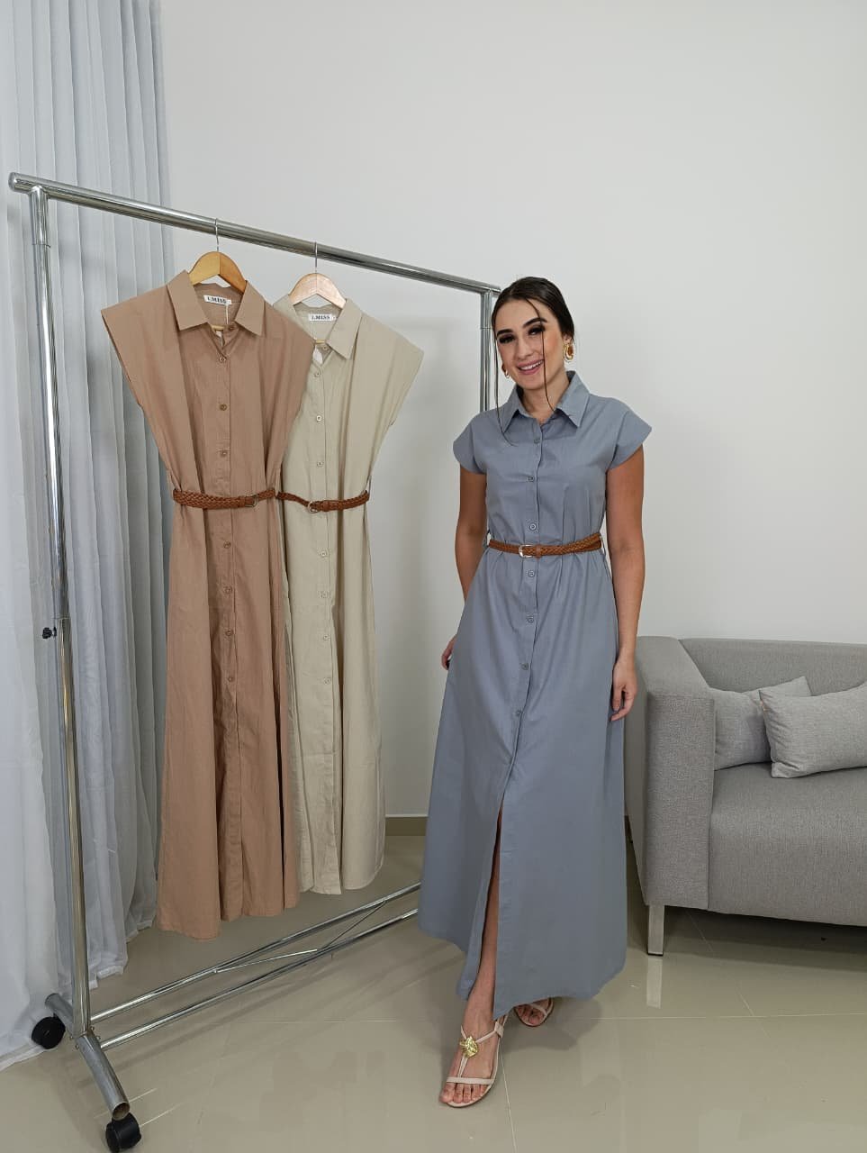 Vestido longo confeccionado em tecido de alfaiataria, com estrutura leve e toque macio, proporcionando caimento alinhado e elegante. O modelo segue o estilo camisa, trazendo um visual clássico e atemporal, ideal para quem busca sofisticação com praticidade no dia a dia. O comprimento longo alonga a silhueta e garante um visual refinado, sem perder o conforto.