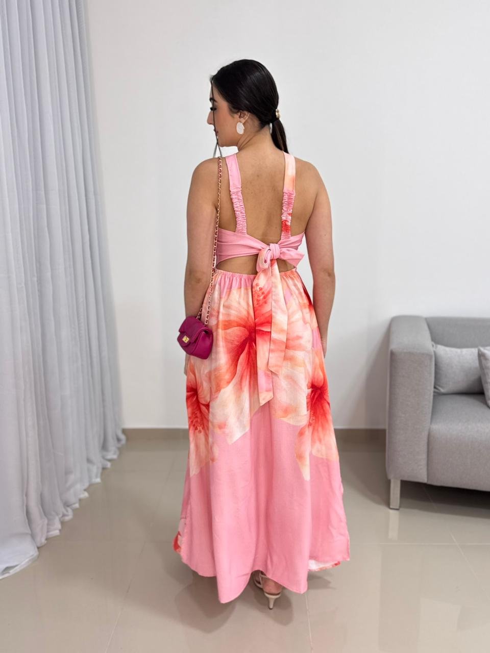 O grande diferencial deste modelo está na sua versatilidade de uso. Ele pode ser amarrado na parte de trás, garantindo ajuste perfeito ao corpo e valorizando a silhueta de forma natural. Além disso, o vestido permite duas formas de uso: com amarração no pescoço, criando um visual moderno e elegante, ou transformado em tomara que caia, perfeito para quem prefere um look mais leve e descontraído. Essa funcionalidade torna a peça ainda mais prática, adaptando-se a diferentes ocasiões e estilos.