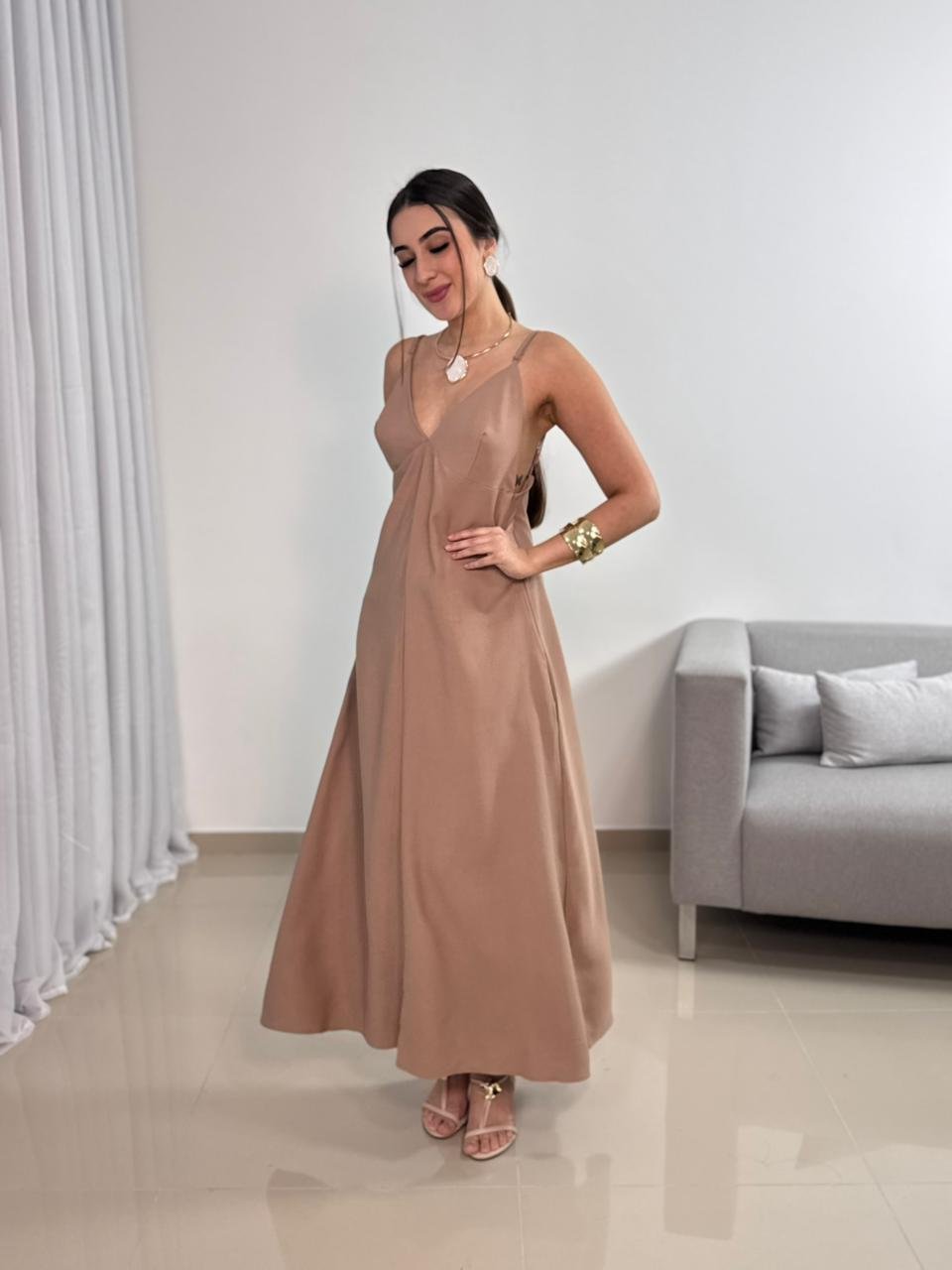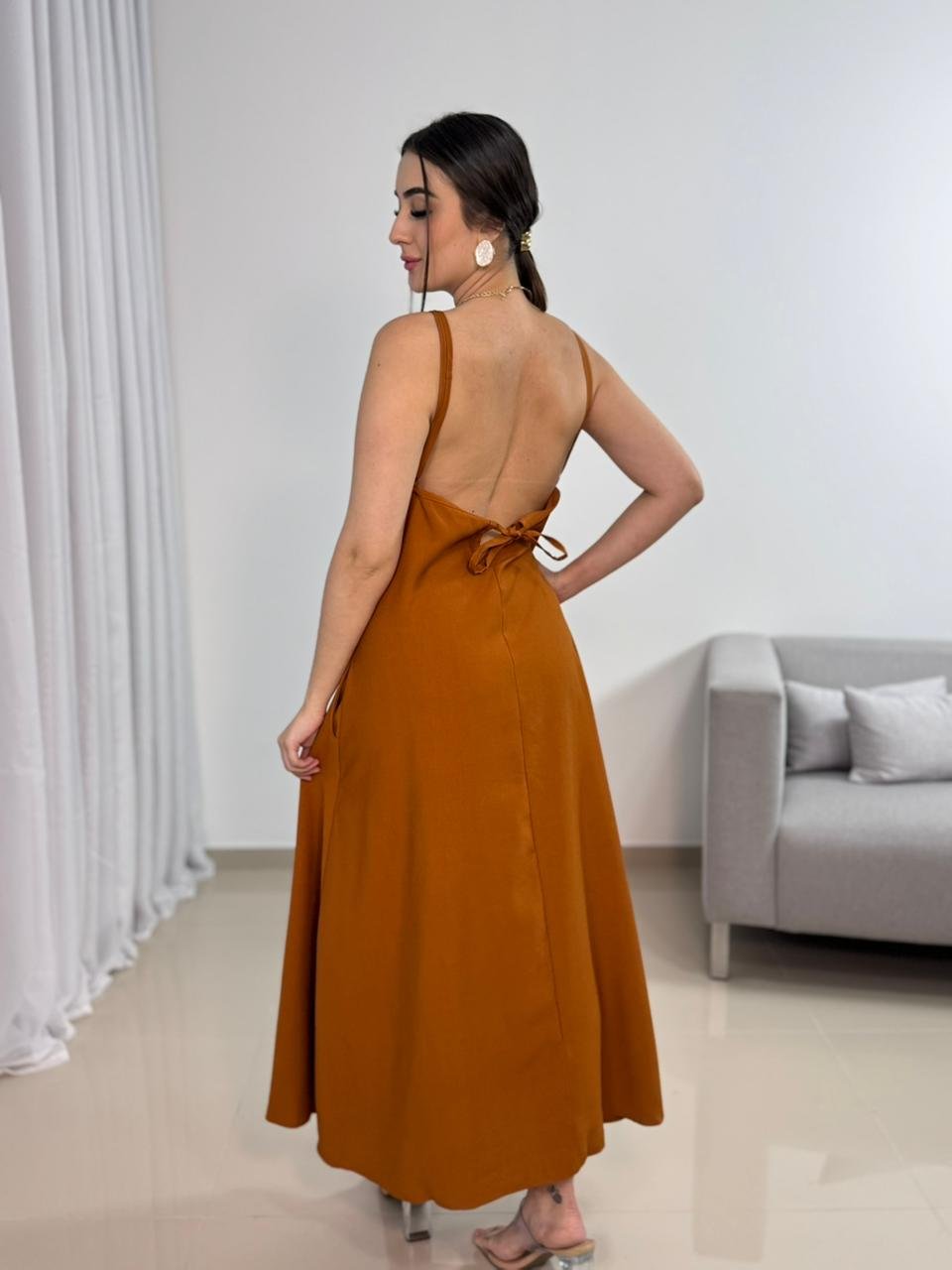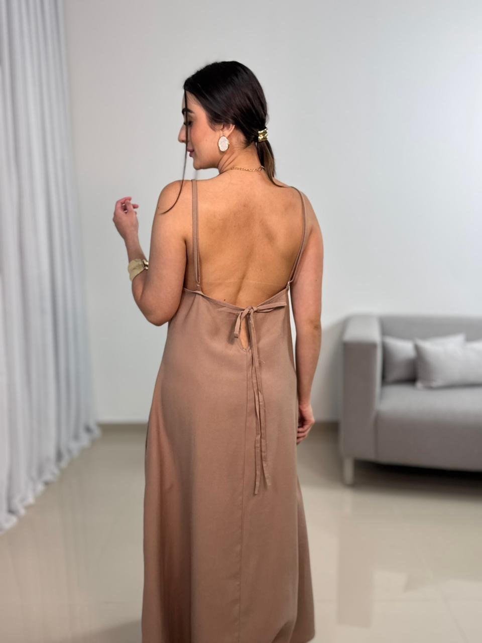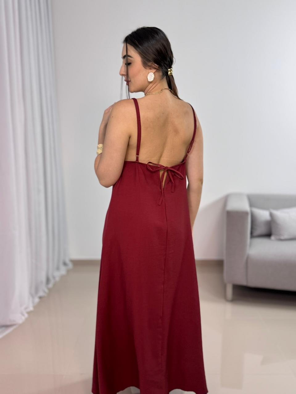 o Vestido Longo Sensorial com Amarração nas Costas combina leveza, ajuste personalizado e um design elegante, ideal para diversas ocasiões.