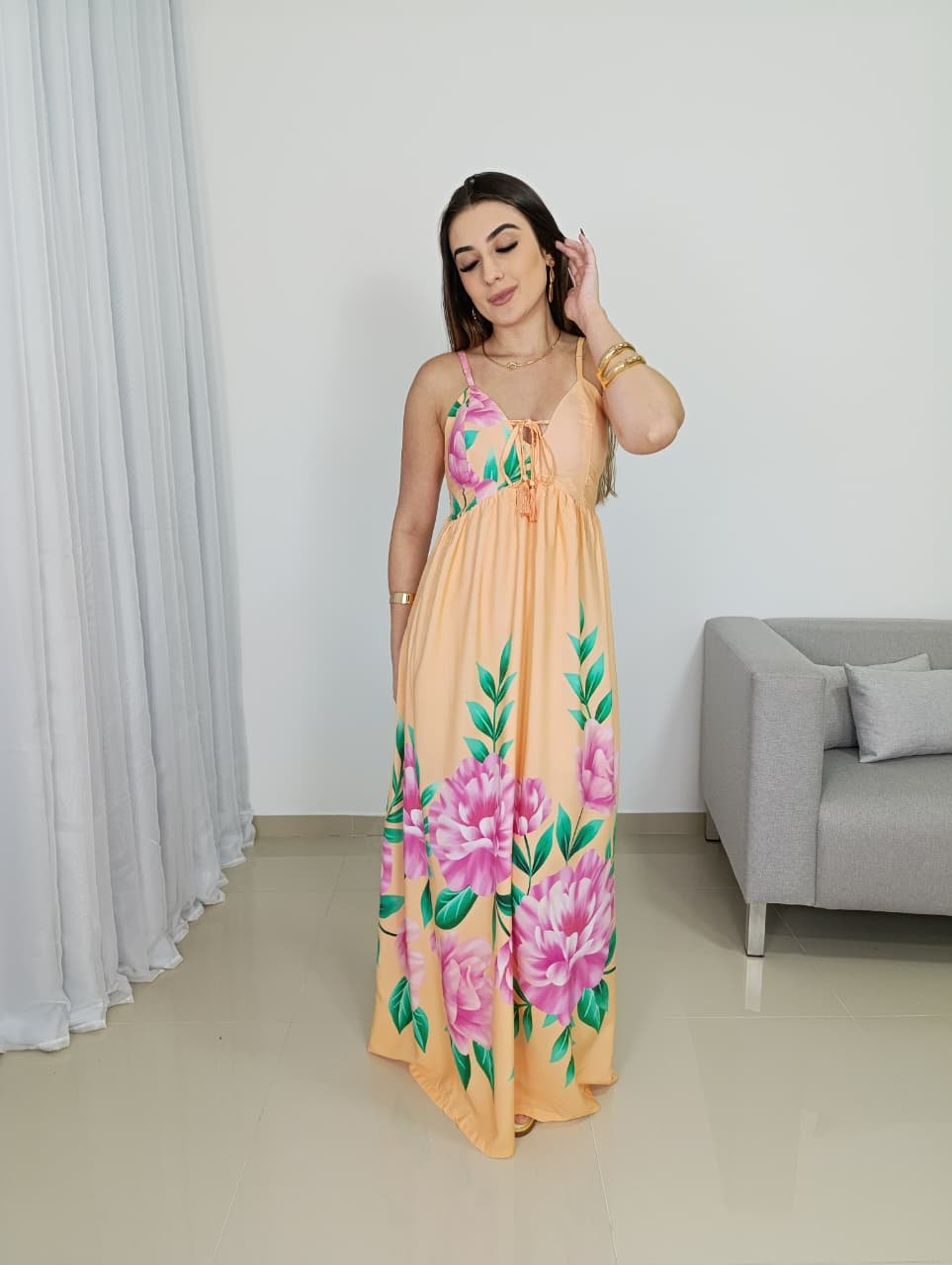 O Vestido Longo Tropical em Viscolinho Feminino é a escolha perfeita para quem busca leveza, frescor e um visual alegre com toque sofisticado. Confeccionado em viscolinho, um tecido conhecido pela respirabilidade e conforto térmico, ele é ideal para dias quentes, passeios ao ar livre, viagens e ocasiões diurnas que pedem praticidade sem abrir mão de estilo. O caimento é fluido e solto no corpo, proporcionando liberdade de movimento e sensação agradável ao vestir.