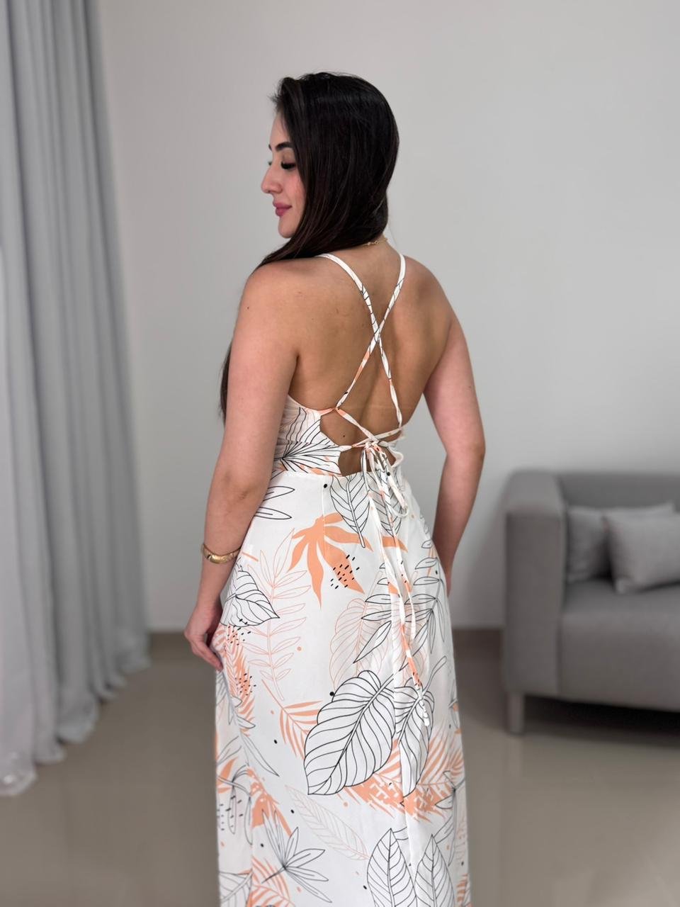 Este vestido longo tropical em tecido fluido é perfeito para quem deseja unir leveza, estilo e conforto em uma única peça. Com caimento suave e toque fresco, ele proporciona movimento natural ao caminhar, criando um visual sofisticado, moderno e marcante. O decote frente única com alças finas ajustáveis valoriza o colo com delicadeza, enquanto o detalhe cruzado nas costas adiciona charme, sensualidade e personalidade à peça. A estampa tropical, em tons suaves de laranja, preta e off white, transforma o vestido em uma proposta vibrante e elegante, ideal para quem gosta de looks cheios de vida e expressão.