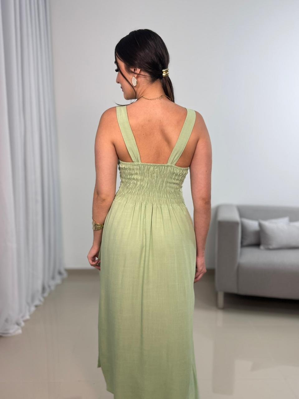 Vestido Longo Viscolinho Verde Pistache com Bojo