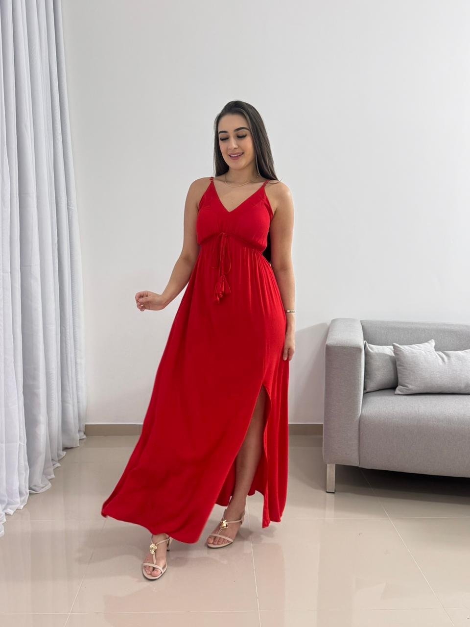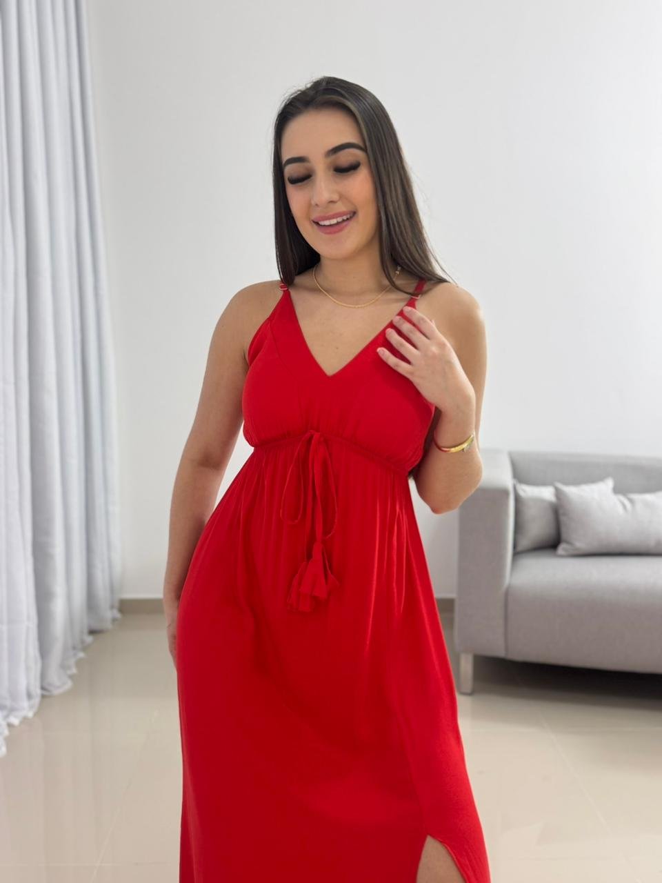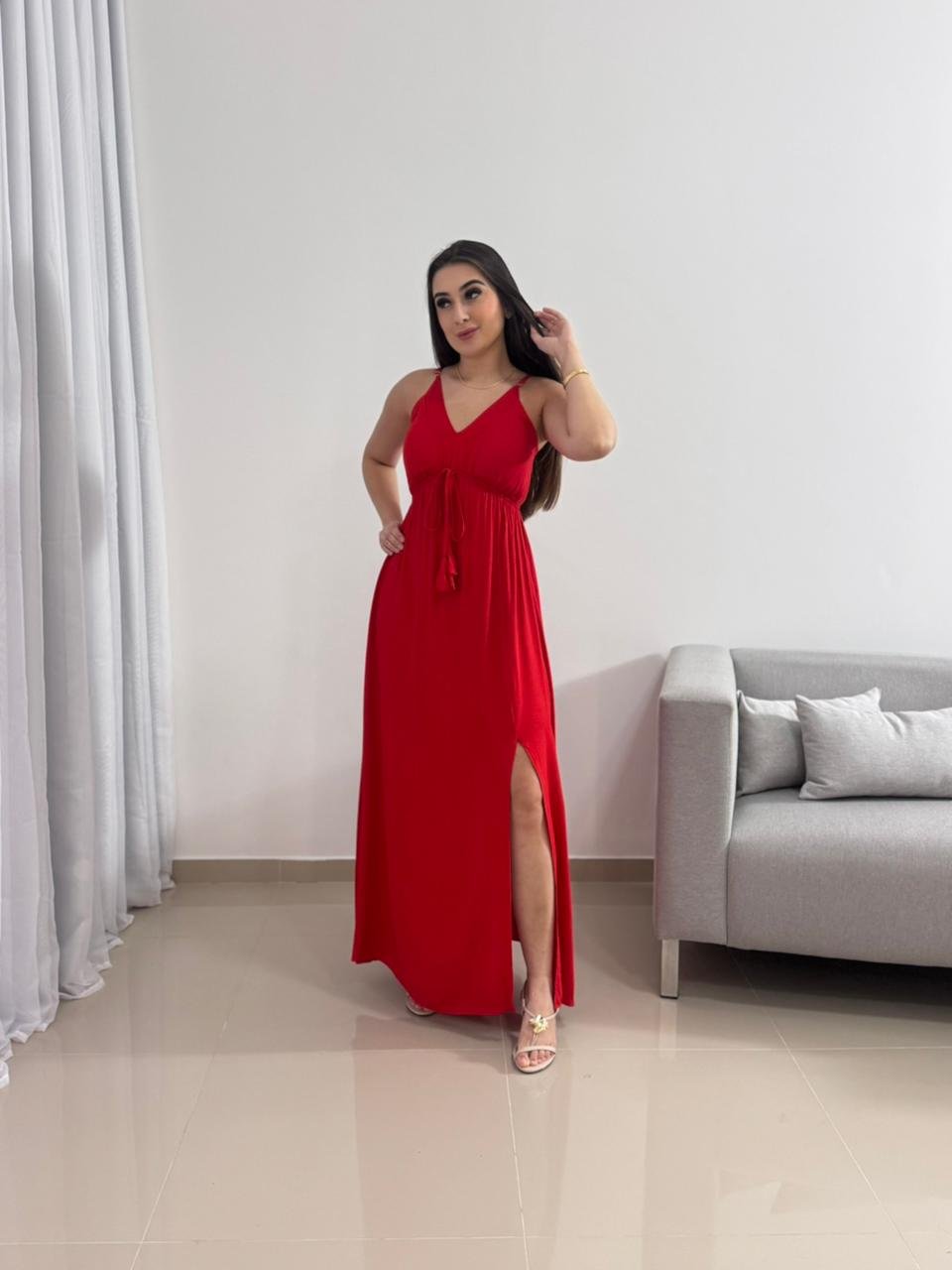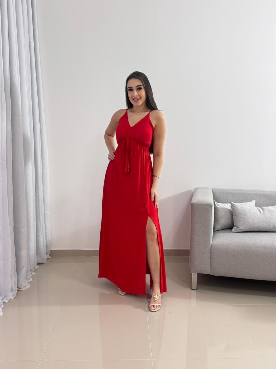 Destaque: O Vestido Longo Vermelho em Viscolinho com Bojo é sinônimo de impacto e elegância. Sua modelagem ajustável, tecido leve e fenda lateral tornam a peça perfeita para quem busca conforto e presença marcante em um único look.