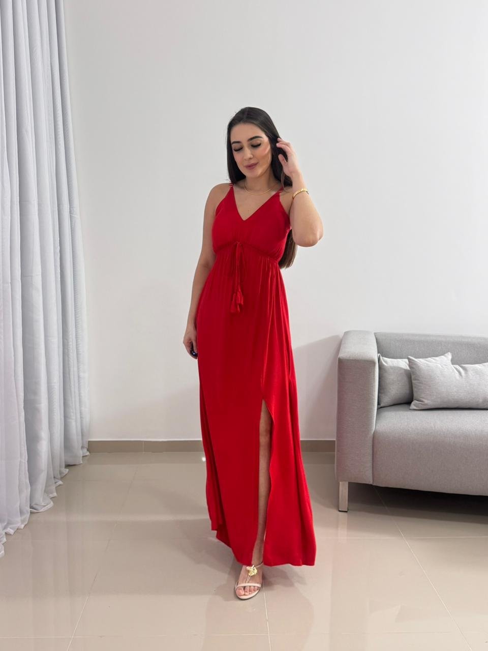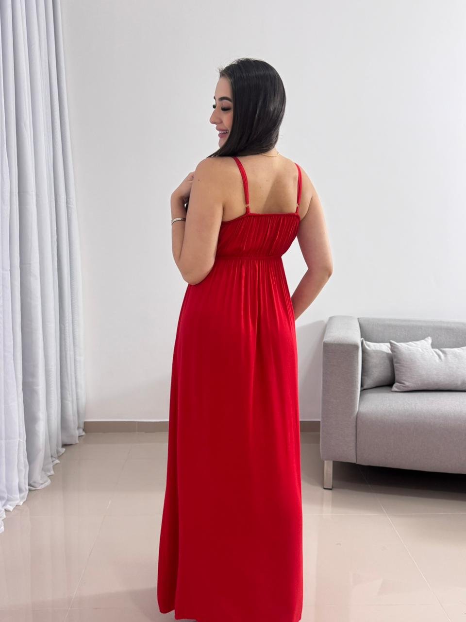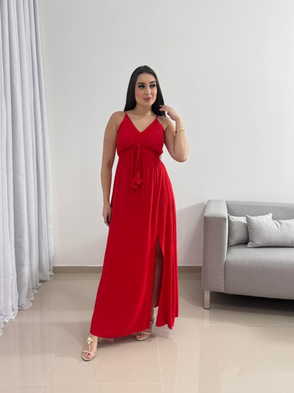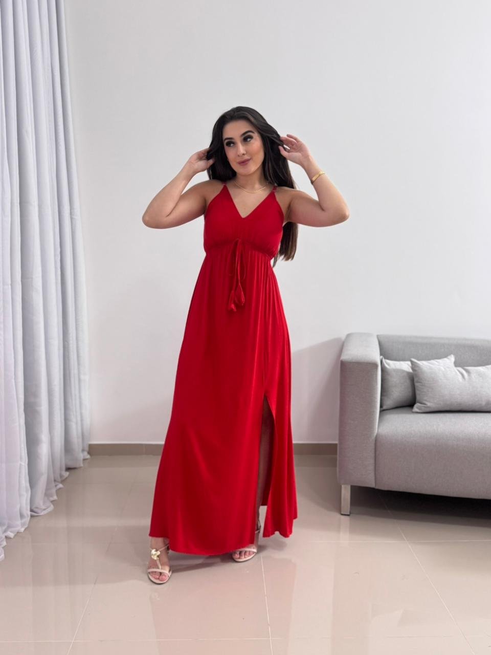Destaque: O Vestido Longo Vermelho em Viscolinho com Bojo é sinônimo de impacto e elegância. Sua modelagem ajustável, tecido leve e fenda lateral tornam a peça perfeita para quem busca conforto e presença marcante em um único look.