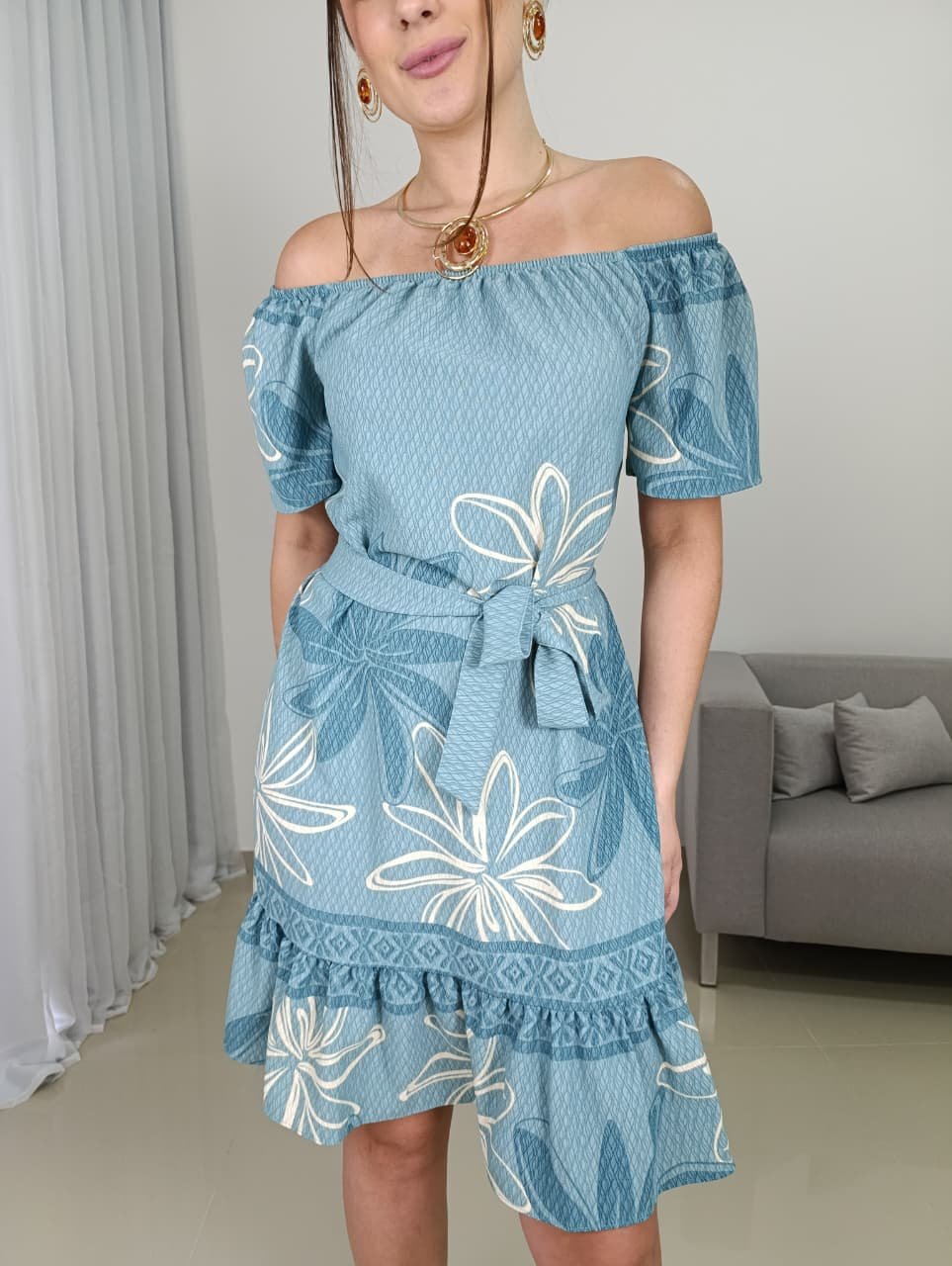 O Vestido Tropical Curto Fluido é aquela peça indispensável para quem busca conforto, praticidade e estilo em uma única escolha. Disponível nas cores azul escuro, azul claro, terracota e verde água, todas com estampa tropical elegante e moderna, ele transmite leveza e frescor, sendo ideal para os dias mais quentes ou para produções descontraídas com personalidade.